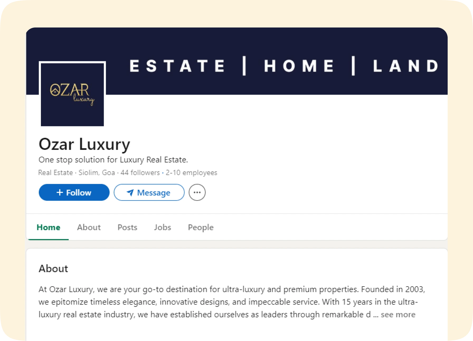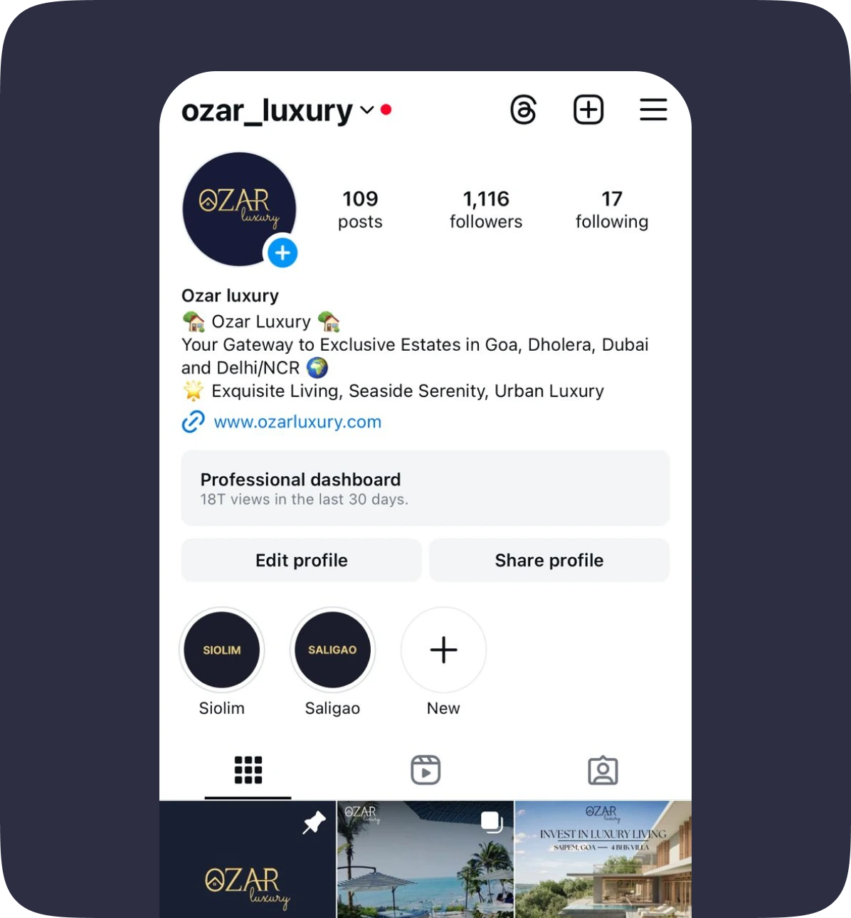 The branding for Ozar Luxury encapsulated exclusivity and sophistication, with a refined logo, elegant color palette, and premium typography. These elements were strategically crafted to reflect the high-end real estate market and applied consistently across all platforms to build trust and resonate with affluent clients.